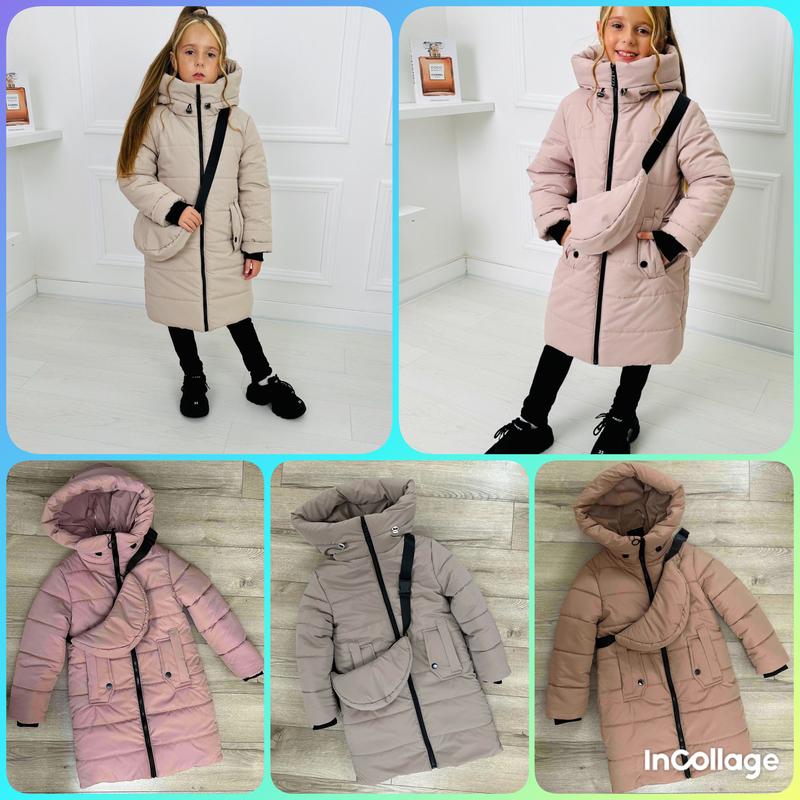 ❄️Зимове пальто для дівчаток з сумочкою Плащівка матова Еммі наповнювач сіліконизований синтепон 300, підкладка фліс. Розміри 128 - 146. 📌Заміри: р 128 довжина 72см, пог 42см, рукав від 51см р 134 довжина 74см, пог 44см, рукав від плеча 54см р 140 довжина 76см, пог 45см, рукав від плеча 57см р 146 довжина 78см, пог 46см, рукав від плеча 60см Рукава можна підвернути на 8 см