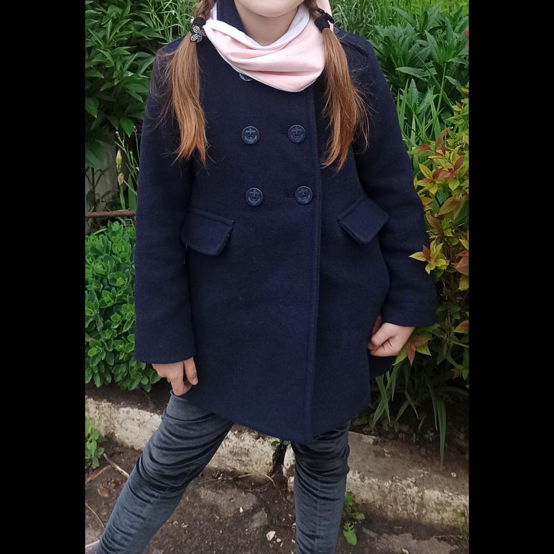 Стильное пальтечко от Gap, будет на рост 122-128см, очень модное, цвет насыщенный темно синий, фото засветит, состояние отличное, нигде не затертое, ничего такого. Очень красиво смотрится на девочке!