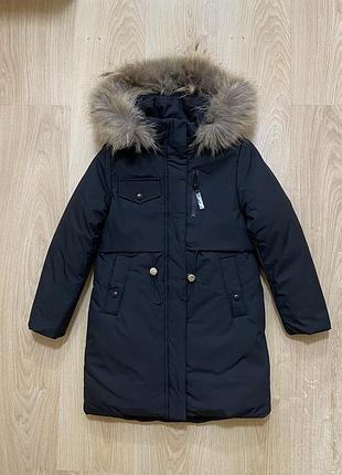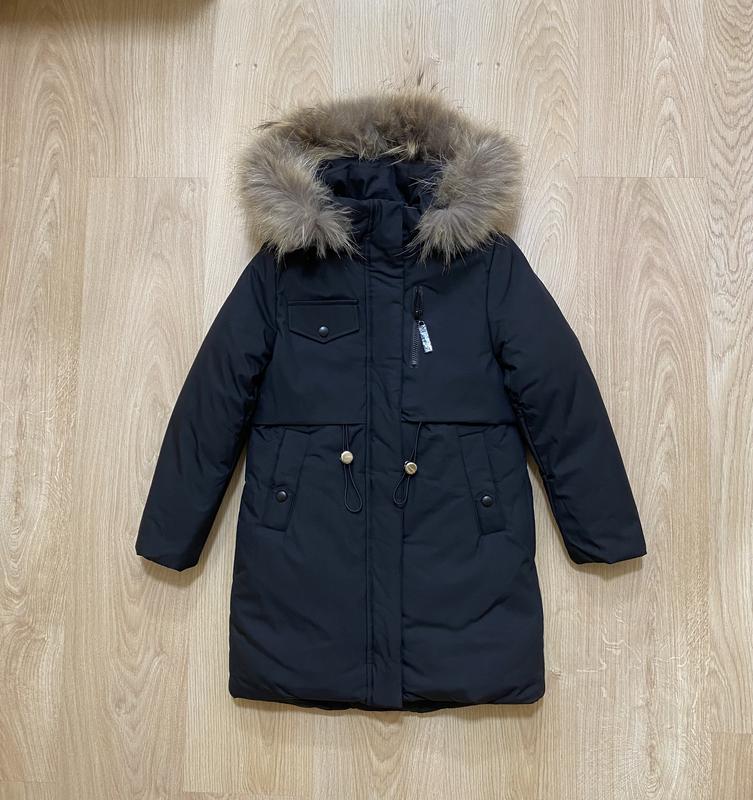 Зимове пальто. Якість супер. Більшомірять. Дивіться заміри. Мех натуральний та капішон відстібаються. По талії є куліски, можна стягти. Розміри 122, 128, РОЗМІР 122. Довжина по спинці 74 см, довжина рукава від плеч.шву 50,5 см, плечі 35 см, напівобхват грудей 42 см РОЗМІР 128 Довжина по спинці 76 см, довжина рукава від плеч.шву 52 см, плечі 36 см, напівобхват грудей 44 см