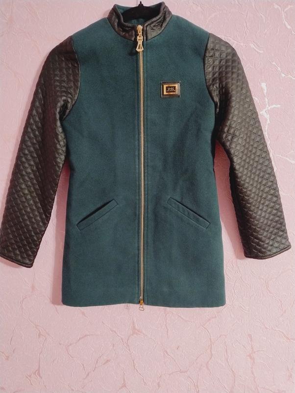 Стильне осіннє пальто для дівчинки, приталене Рукава-шкірзам, закочуються, флісова підкладка, є нюанс-пошкоджений замок, в усьому іншому стан ввдмінний
