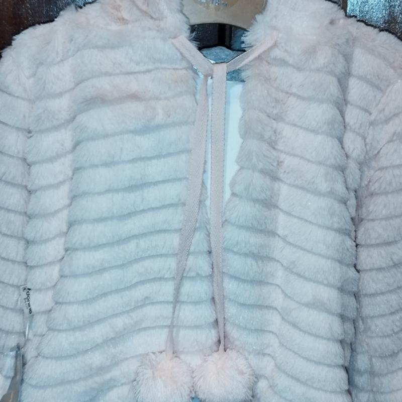 Детское пальто-шубка размер 80, завязывается на помпончики, капюшон мишка, нежно-персикового цвета, фото не передает цвет.