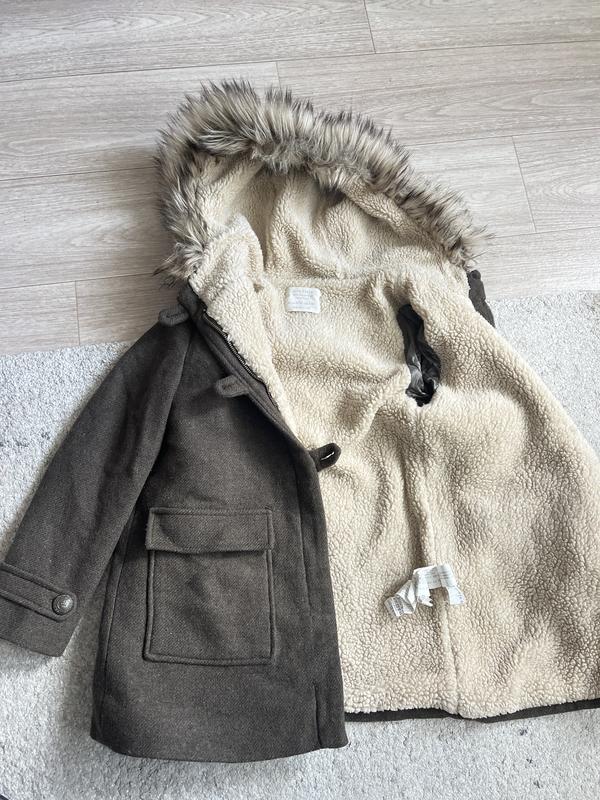 Пальто на холодну осінь/весну. Все в ідеалі, але загубився ґудзик на рукаві і розійшлася строчка на кармані ( останні 2 фото). В ціну враховано! По бірці на 9-10 років, але як на мене, маломірить! Довжина 59, рукав 47,5, нОГ 42.
