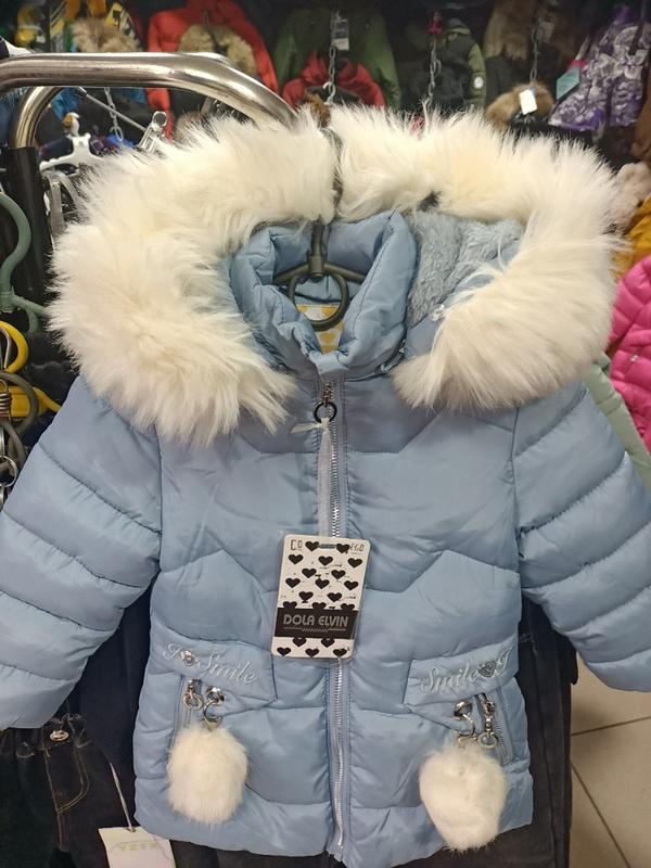 зимнее пальто со съемным капюшоном для девочки голубого цвета. мех на капюшоне снимается. высокая горловина. есть два рабочих кармана которые застегиваются молнией. интересный дизайн.