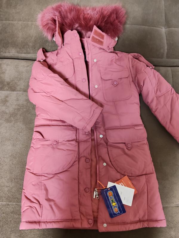 Новое пальто зимнее для девочки на 10-11 лет, 140-146. Мех на капюшоне искусственный, капюшон и мех отстегивается, в рукавах манжеты, наполнитель пальто холлофайбер, много карманов, красивый цвет. Верхняя ткань -многослойный функциональный материал, который сочетает внешнюю защиту (ветро/влагозащита) с утеплением (флис), то есть это не просто ткань, а система для одежды, обеспечивающая комфорт.