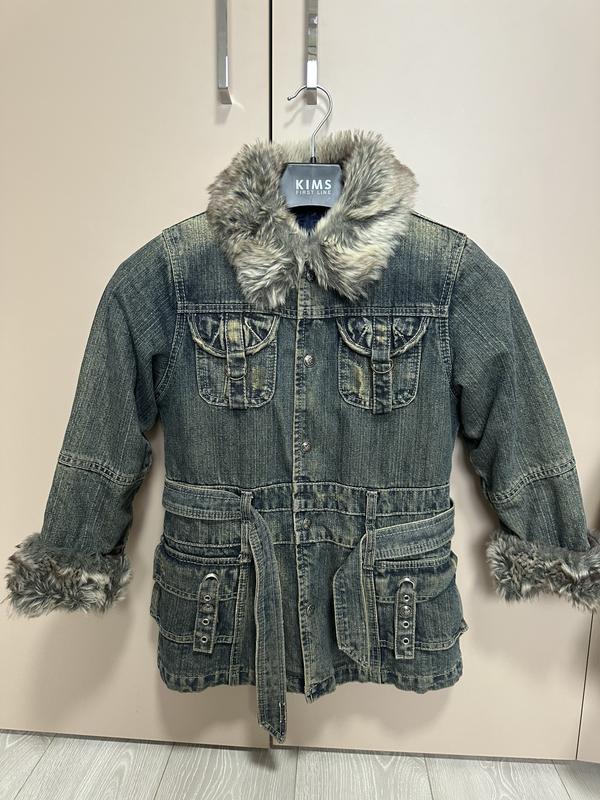 Дитяче пальто-плащ, зі знімним хутром, дуже тепле, стильне виглядає, джинсове Від 5 до 10 років