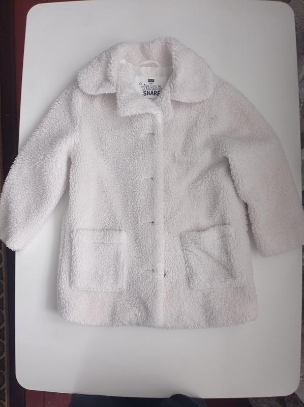 Детское пальто барашек для девочки Цвет более молочный, чем белый По наборке на 3-4 года, но может быть от 2,5., зависит от ребенка