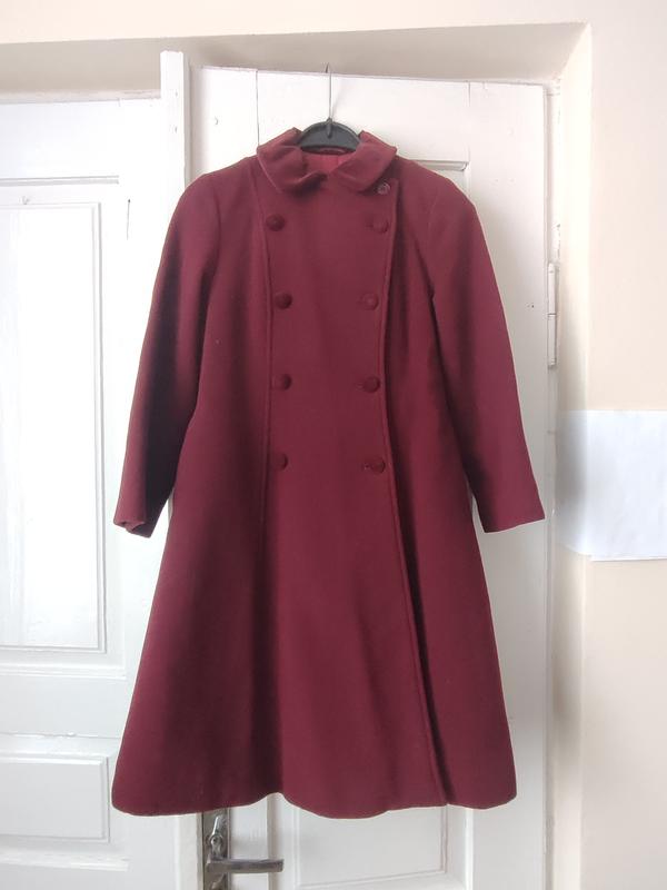 Очень красивое пальто в цвете бордо для девочки. С шапочкой. На возраст 9-10 лет. Плечи - 35 см, ПОБ - 40 см, ПОТ - 39-40 см, длина - 85 см, рукав - 49 см