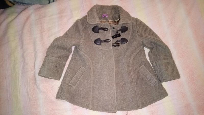 На возраст от 1,5- 3,5 года. Хорошее пальто для девочки, размер 18-24 мес, мы носили с 1,5г до 3л. Фирма F&F, производство Вьетнам. Состав ткани 56%- шерсть, 44%- полиэстр, подклад полиэстр. Застежки - три кнопки, до середины длинны, еще есть косточки на петлях. Два функц. кармашка. Покрой трапеция. Состояние очень хорошее.