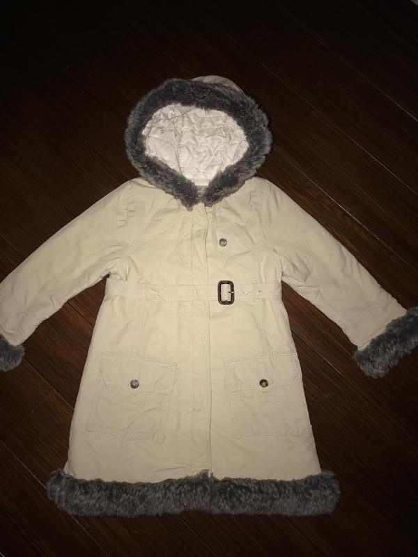 Очень красивое пальтишко! Нюансы-нет части замка, сам замок и кнопки рабочие. Чуть потёрта кожа на пряжке ремешка. В остальном-идеальное состояние!