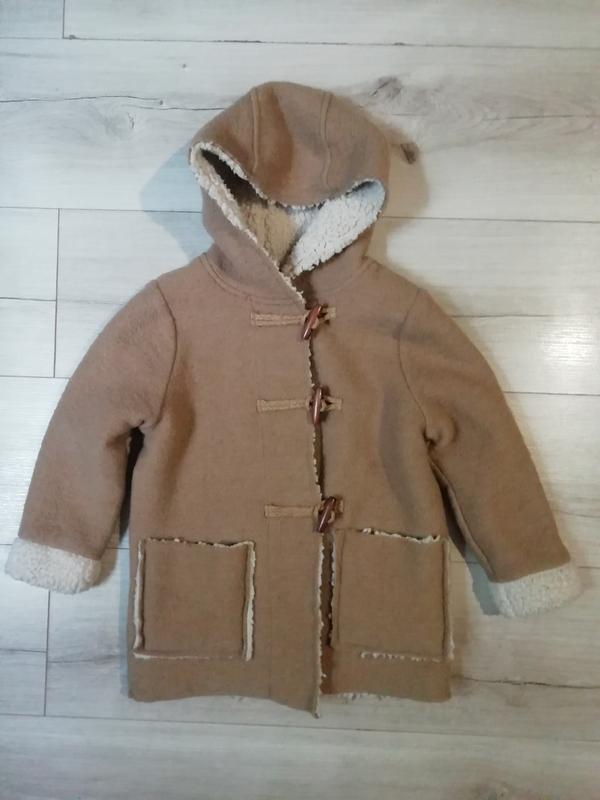 Дуже теплі пальто з капішоном, майже 50% шерсті. В шва шарі, тепленька м'яка ягка підкладка. Защіпається на об'єднання роз'ємні гудзики, є кишені. Довжина 50 см, ширина 39 см, до 41 див Довжина рукава від шиї 44 см, від шва 37 див. Одягалася 1 раз, не підійшла по розміру