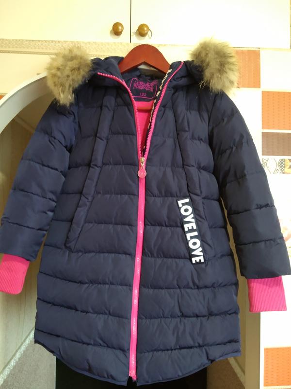 Пальто в доброму стані, тепле. Єдине, треба попрати. Всередині до пояса підкладка фліс, наповнювач штучний пух(біо-пух), не викликає алергії, хутро на капюшоні натуральне, відстібається, з боків є кишені, на рукавах манжети трикотажні подовжені, можна підкотити. В подарунок до пальто рожевий хомут.