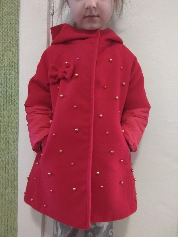 Чудове пальто в ідеальному стані, одягалось 2 рази і швидко виросли.. Носили на ріст 92-98 (заміри надам) На фото ріст дитини 104см Є капішончик, дві кишеньки, ніжні бусі для прикраси.