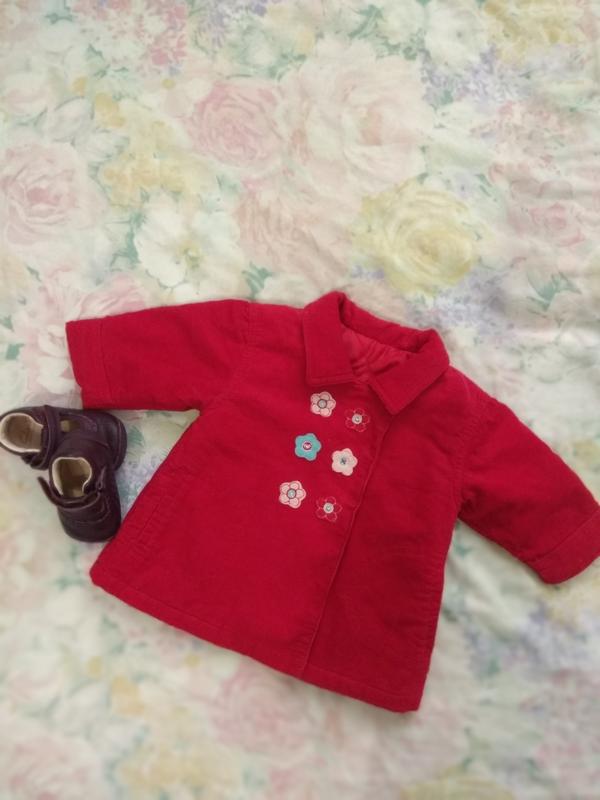пальтечко осінь-весна для дівчинки 3-6 міс., одягали 2 рази, дефектів немає, якість хороша, тканина мікровельвет, кнопки добре тримають, у підкладці синтепон