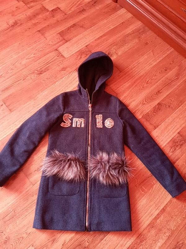 пальто темно синє,на фото я зробила снімки трохи світлішого щоб видно було стан пальта,є катишки,але тим що воно синє не дуже видно,зручне,мякеньке