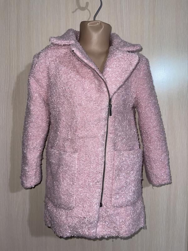 Шерстяное пальтишко на подкладке полиестер. Ткань имеет объемную структуру. Цвет розовый. 6 лет Kiabi(France) Длина 57. ПОГ 37. Рукав 39/49.