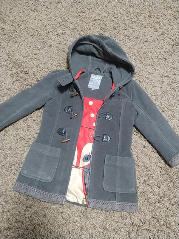 Пальто для дівчинки в гарному стані. На замочку і гудзиках з нависними петлями. Є капішон та кишені. На ріст 110 см по етикетці. В середині підкладка і тонкий синтепон. Надам заміри.