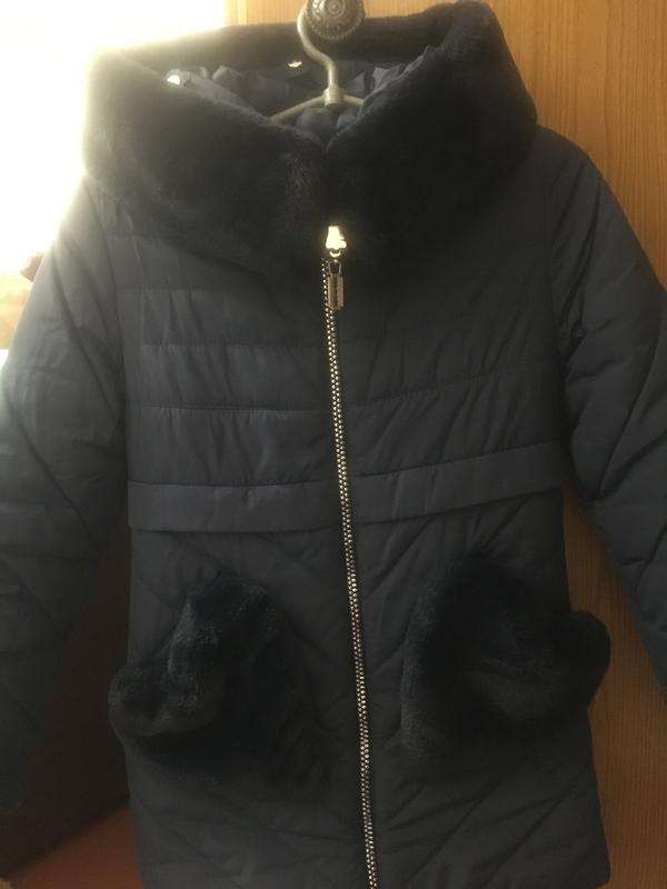 Отличное зимнее пальто, очень красивое.Съёмные карманчики в виде сердечек .Из недостатков -вытерта немного ткань сзади, на фото видно.И необходимо аккуратно закрывать змейку