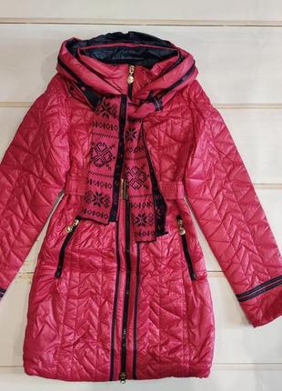 Пальто демісезонне для дівчаток від 8 до 12років. Наповнювач - тонкий синтепон. Колір - рожевий (насичений) Дуже красива модель з використанням найякісніших матеріалів. Знімний шарф і пояс. На фото заміри найменшого розміру, рукав на 7 см можна підгорнути Відправка в день замовлення