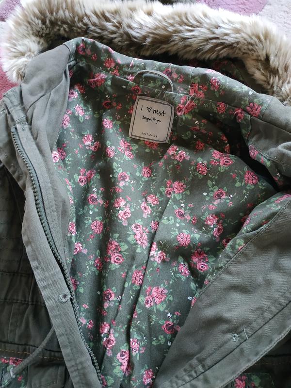 Парка для дівчинки від Next, стан прекрасний, без дефектів, колір не втратила. на 3-5 залежить від дитини, заміри по запиту. Колір насичений хакі, темніший ніж на фото, камера пересвітила.