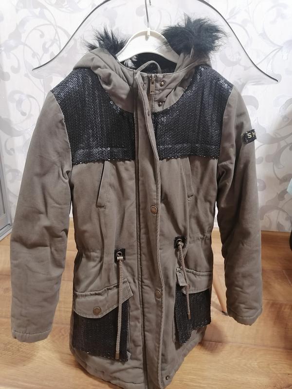 Парка Reserved. размер 134.Парка на синтепоне и меху. На сезон холодная осень-теплая зима. Мех на капюшоне отстёгивается, сам капюшон нет. Состояние очень хорошее. Цвет: зелёный хаки