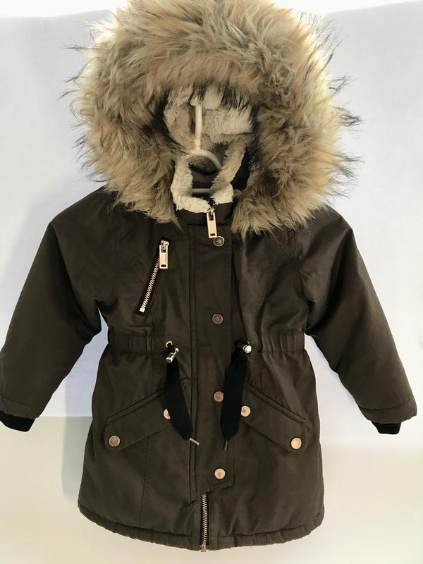 Куртка ( парка) Next до стильної зими та холодної осені. Дуже функціональна модель з карманами та капюшоном, подовжена. Мала носили до -7С*. На підкладці з штучного хутра, дуже м’яке та приємне до тіла. В ідеальному стані. З нюансів є затертості на кнопках , видно на фото, але в носці не видно та невеличка закупка. ( останнє фото). По талії йде куліска, зо затягується і таким чином регулюється. Ззовні з водовідштовхуючою пропиткою, не промакає. Склад; 100% поліестер. Розмір 104-110. Всі питання по запиту в повідомленнях (0679295525, Валерія).