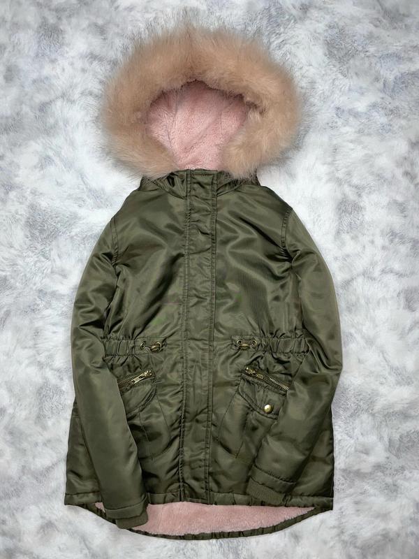 тёплая деми парка на махре, капюшон и мех не съёмный, 9-10 лет Nutmeg длина 57/62. ПОГ 42. рукав 49-52