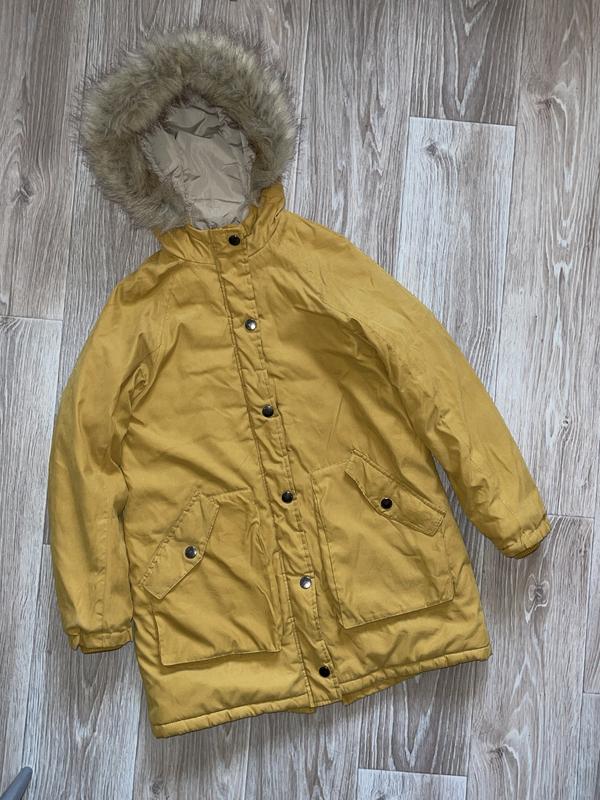 Теплая парка с наполнителем Подкладочная ткань полиестер Стильный горчичный цвет Карманы утеплённые флисом Высокая горловина Защита молнии Доп манжеты в рукавах Состояние отличное 🏷️Zara 11-12 лет/146-152 Длина 74. ПОГ 45. Рукав от шеи 63