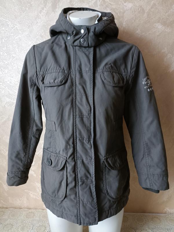 Куртка парка демисезонная на 9-10 лет.,н а девочку.Замеры: плечи 36, длина 61, ширина под проймами 43, рукав 49, внутри есть манжеты.