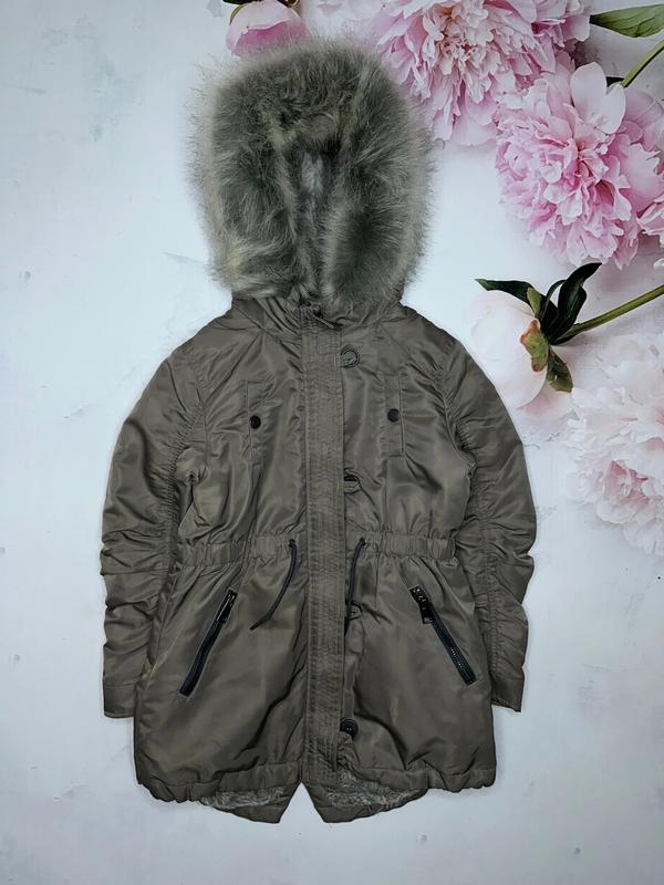 деми парка на тёплой подкладке 8 лет Некст длина 61/66. ПОГ 41. рукав 47 есть зацепочка , в целом не видно