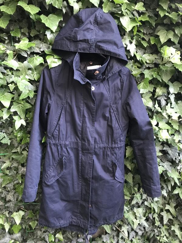 Парка с отстегивающимся подкладом. То есть иункционалтная можно носить как плащ или ветровку, а с подкладом холодной осенью, весной до 10 с× На размер хс, с