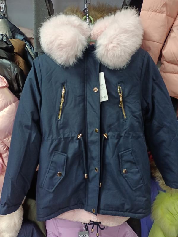 курточка з капюшоном для дівчаток . хутро на капюшоні відстібається, капюшон відстібається. курточка має чотири робочі кишені. куліскою можна підтягнути ширину курточки. спинка курточки подовжена.Зріст 110-116см.
