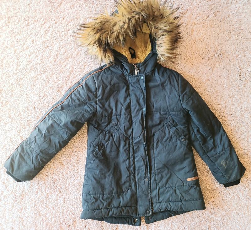 Якісна, така добротна зимова парка. Вырванная одна кнопка, а так просто все идеально. Сток. 50%-полиэст, 40%-коттон, 10% полиамид Длина - 62см. ПОГ- 43см. рукав- 54см