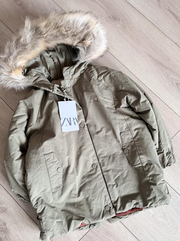 Zara в наличии удлиненная парка с мехом, подойдет как на мальчика так и на девочку, размеры 3-4, 4-5, цвет хаки и 3-4р коричневый, замеры по запросу