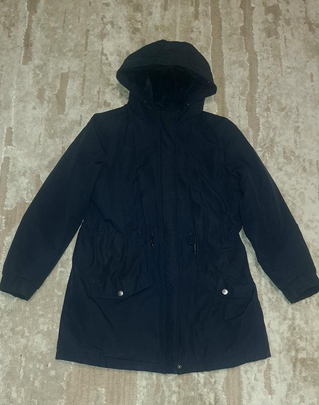 Зимняя парка Mango для девушки. Размер 164 см (12-14 лет) Длина от плеча 75 см, от горловины 78 см. Рукав 56 см. Плечи 42 см. Пройма около 49 см. Пояс фиксируется шнурками Подкладка искусственный мех, рукава без подклалки Стан - идеальный