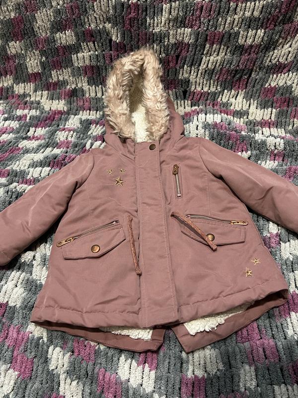 теплая розовая парка для девочки (1-1,5 года, 80-86 см) замеры: длина 40-44 см рукав 29 см подмышками 35,5 см плечи 25 см