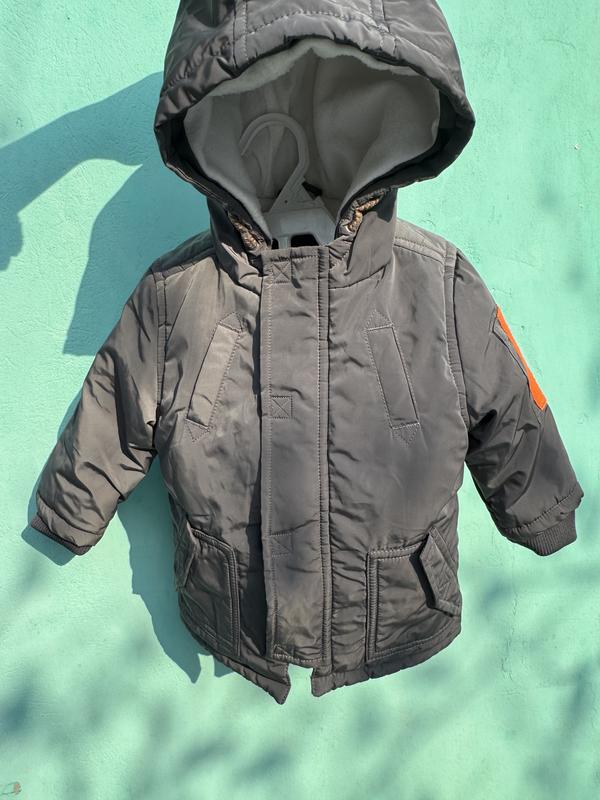Стильная парка на весну состояния идеальной 9-12 месяцев Серого цвета Как будто переливается или с частицами миротражающего эффектная