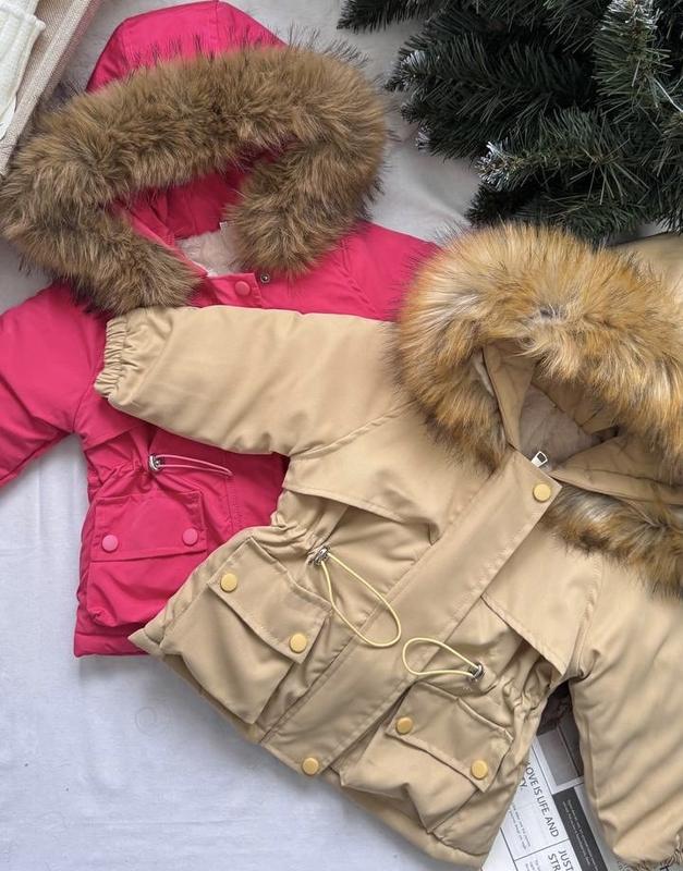 сезон-холодна осінь/єврозима наповнювач синтепон,всередині тепла ніжна травка в поясі присутня утяжка хутро на капішоні знімається, капішон не знімається Розмір 90-140
