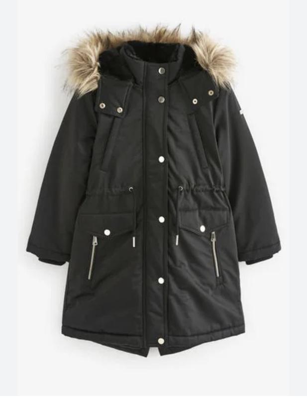 Водонепроникна парка для дівчинки Next. Розмір 12 років, можна з 11. Дуже тепла, підкладка хутро, наповнювач синтепон. Стан ідеально-новий, на зміну було ще дві куртки. Заміри: довжина рукава від капюшона 64 см, від плеча 56 см, довжина 81 см, ПОГ 52 см.
