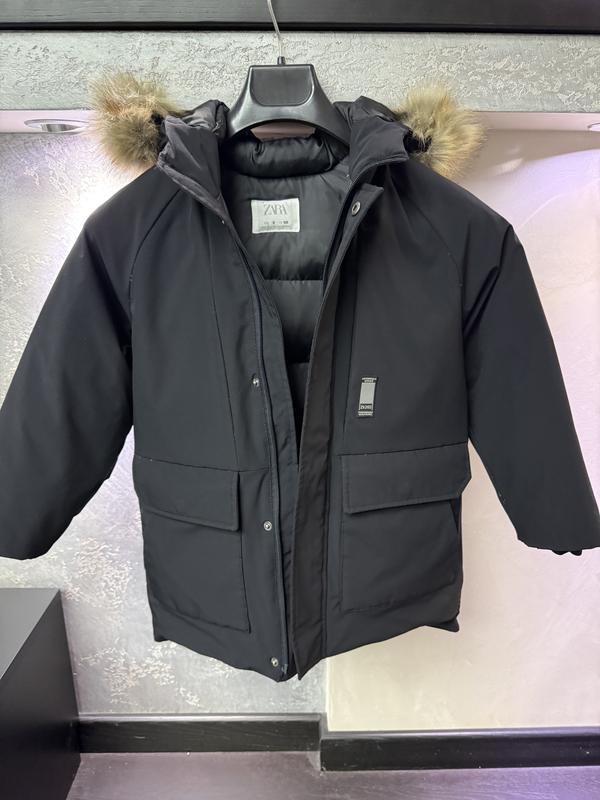 Парка Zara 128 см Склад пух/перо Водовідштовхувальний матеріал Хутро знімається Є невелика зацепка в фотогалереї виклала фото,майже непомітна наживо