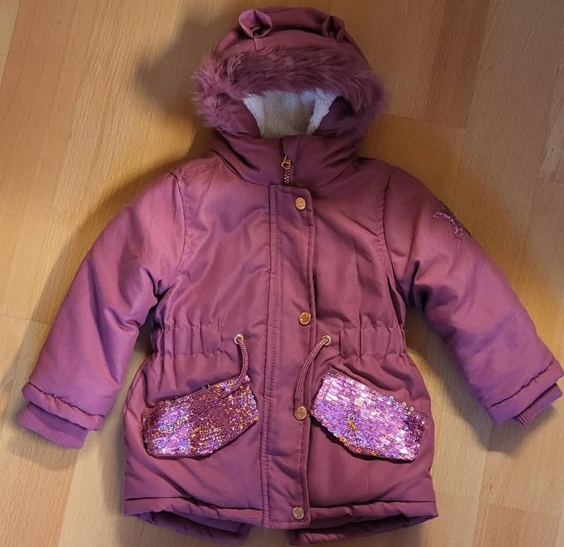 отличная парка с ушками на капишоне и маечках и карманах