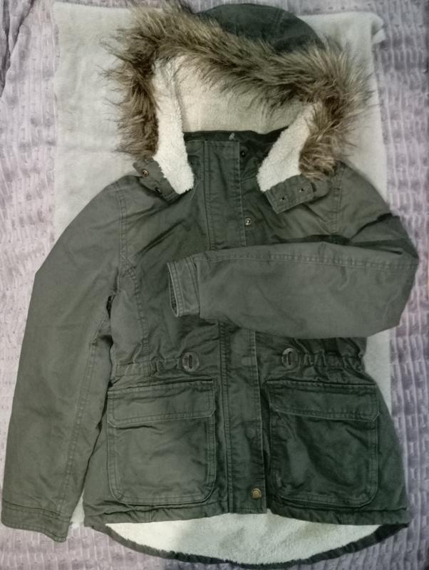 парка в хорошем состоянии, теплая. Капюшон снимается