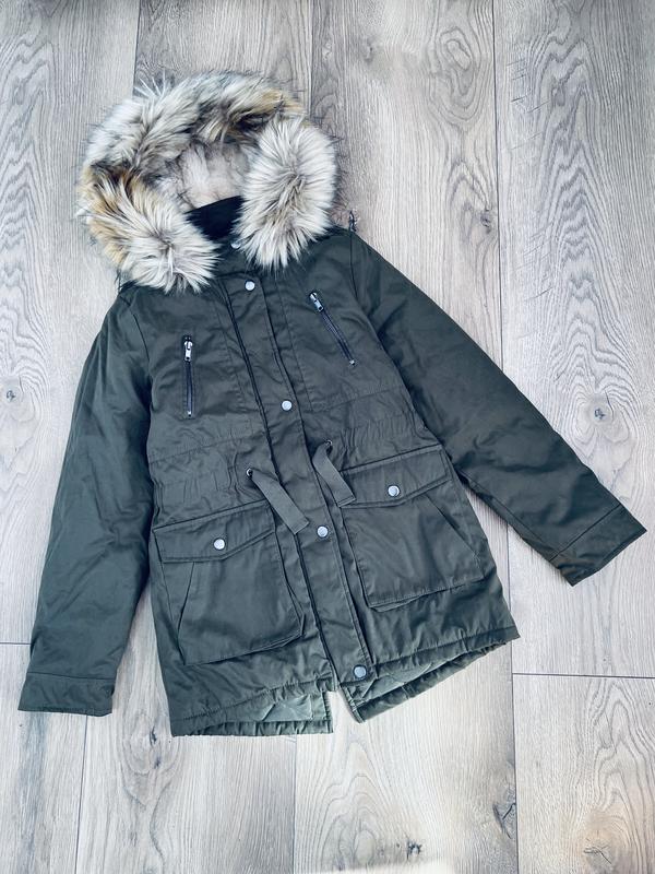 Стильна парка для дівчинки C&A. Єврозима. Нова, з біркою. Розмір 10-11 років (152 см), пог 45 см, довжина 65 см, рукав від плеча 57 см, від горловини 65 см. Капюшон не відстьогується, хутро на капюшоні не знімається.