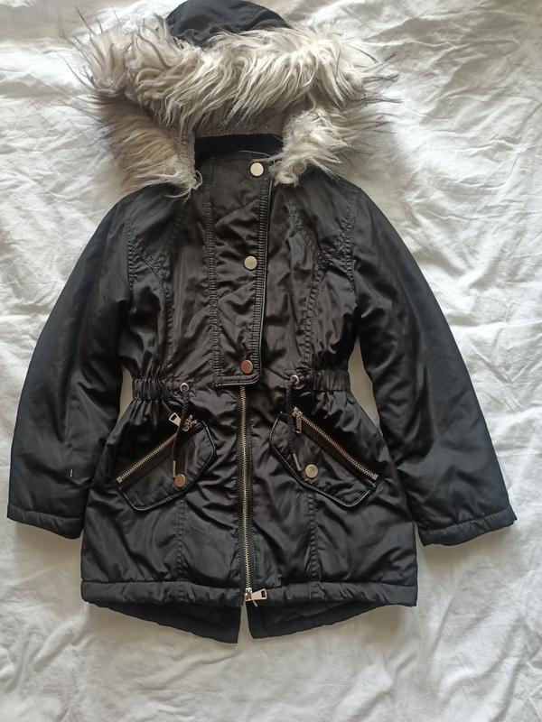 Стильна парку на дівчинку від бренду F&F. В ідеальному стані. Тепла і дуже красива, м'яка внутрішня підкладка) Склад: 100% полиестер. Розмір на 6-7 років Висота 122 см По грудях 63 см Рукав від плеча 40 см Довжина по спинці 50-53 Плічка спинка 29-30 Парку подовжена тепла капюшон з хутром