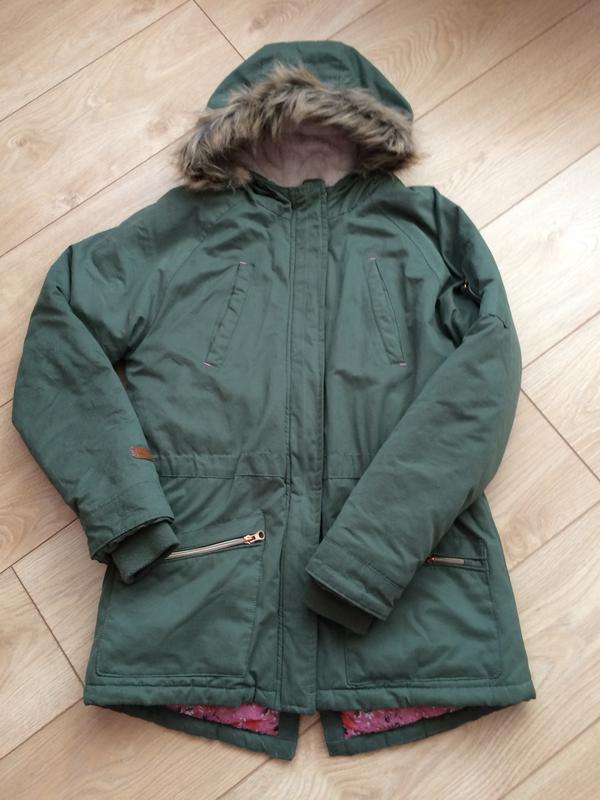 Теплая парка Cool club темно-зеленого цвета. Плотная наружная коттоновая ткань, Подкладка до талии - из меховой ткани, нижняя часть - нейлон, Талия регулируется резинкой с внутренней стороны, Застежка - молния, Два кармана врезных, два кармана, на молниях, один карман на рукаве на молнии Капюшон вшитый, внутри мягкая меховая ткань, по краю отстегивающийся на молнии искуст.мех, Рукав реглан, по краю рукава трикотажная резинка Утеплитель на холодную осень/теплую зиму. ❗️Отправка посылок только Новой почтой ❗️При оплате на карту обмена и возврата нет ❗️При условии наложенного платежа предоплата заказа 200 грн., которая не возвращается, и предусматривает компенсацию доставки в обе стороны, если товар не забран в отделении Новой почты ❗️Прошу уточнять все детали перед покупкой