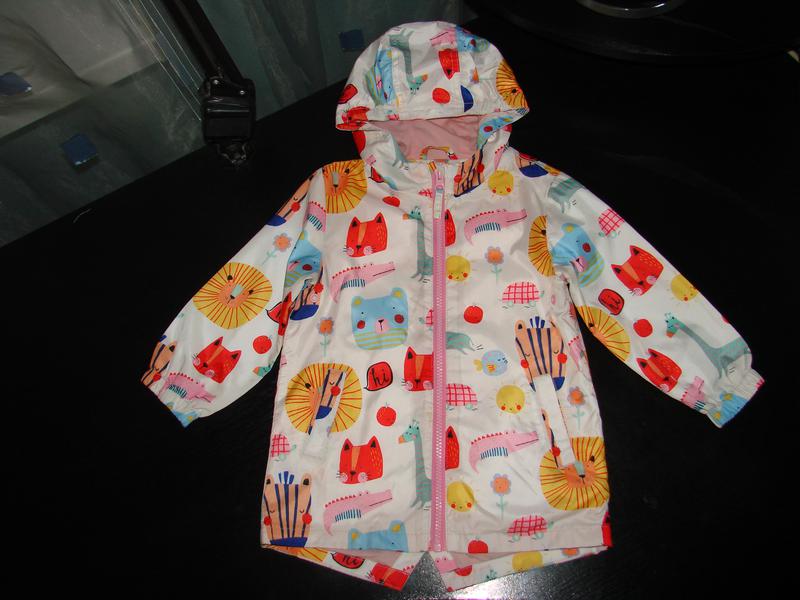 крутая яркая ветровка х.б подкл.Next 1.5-2 г до 3 л отл.сост. нереально красивая! Реально как новенькая,возле шва в самом низу есть невидимое прозрачное пятнышко. подкладко 100% коттон Длина 45 рукав 32,5 см пог 33 см плечи 28