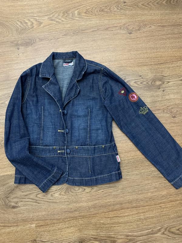 Джинсовый пиджак, на 10 лет, длина 51 см, длина рукава 55 см