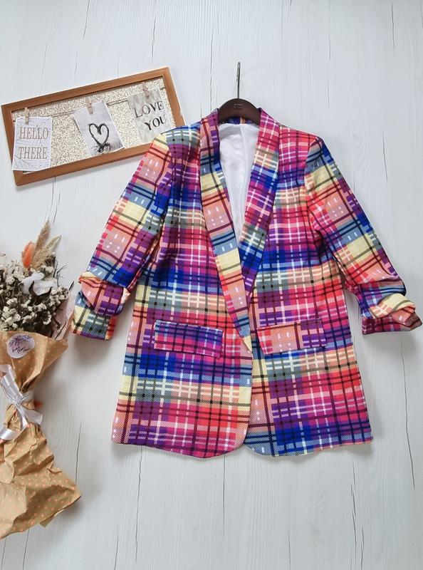 Стильный блейзер на подкладке в ярких цветах тканина костюмка 164(2 шт)-длина 70 см, пог 52 см,рукав 3/4-48 см 2 см