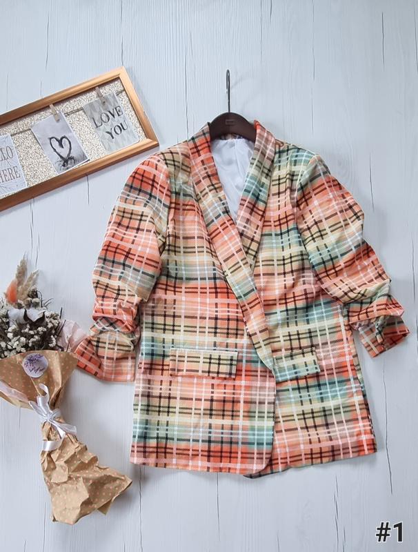Стильный блейзер на подкладке в ярких цветах тканина костюмка 164(1 шт)-длина 70 см, пог 52 см,рукав 3/4-48 см 2 см