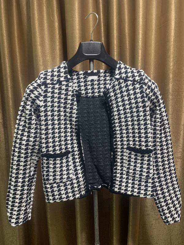 Пиджак next с орнаментом клетка гусиная лапка размер на возраст 11лет, рост 146см черно-бе...