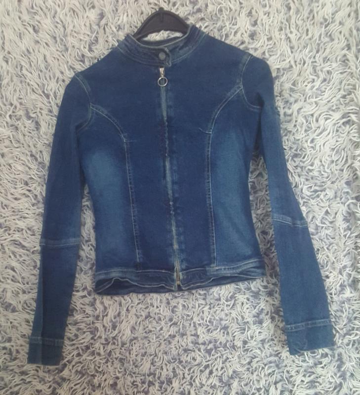 Джинсовые куртка-пиджак на девушку подростка 1е9-152см. На замочке. В очень хорошем состоянии.